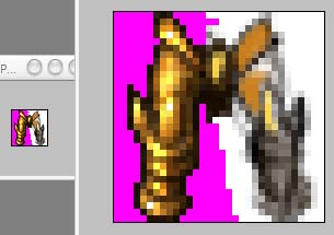 when you are near to finish your item, you have to cut it from the background and give the alpha, to do that paint flash pixels around it and select the flash zone and delete that. pay attention to be on a layer and not on the background and to have a magic select with no antialias, because we are working with pixels.